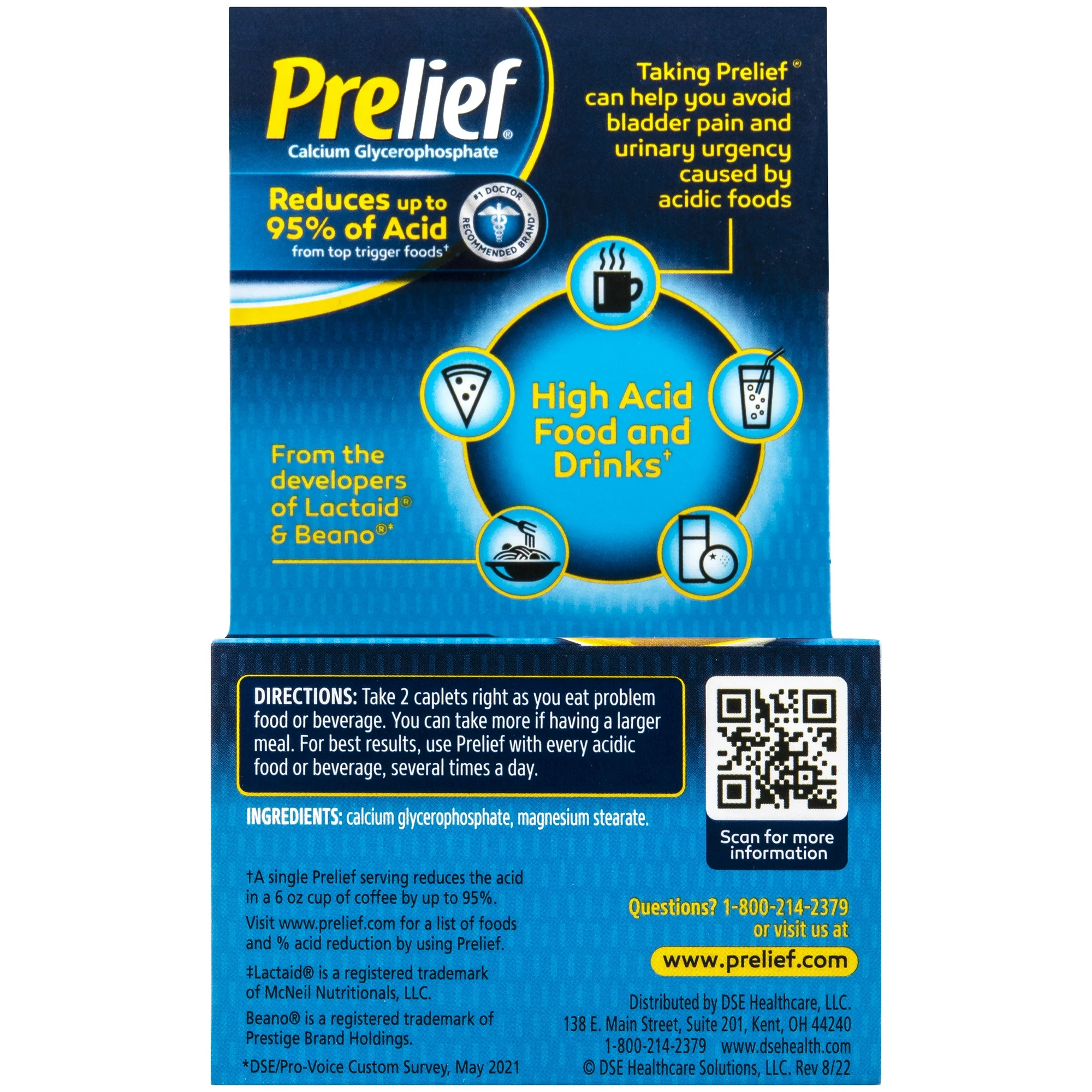 - The Original Acid Reducer: Introduced in 1996 from the developers of Lactaid and Beano, Prelief is the original product that was developed specifically to reduce acid from foods and drinks