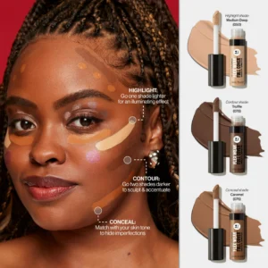 • Dual-ended tips are shaped to glide across the curves of your face, eyes and lips