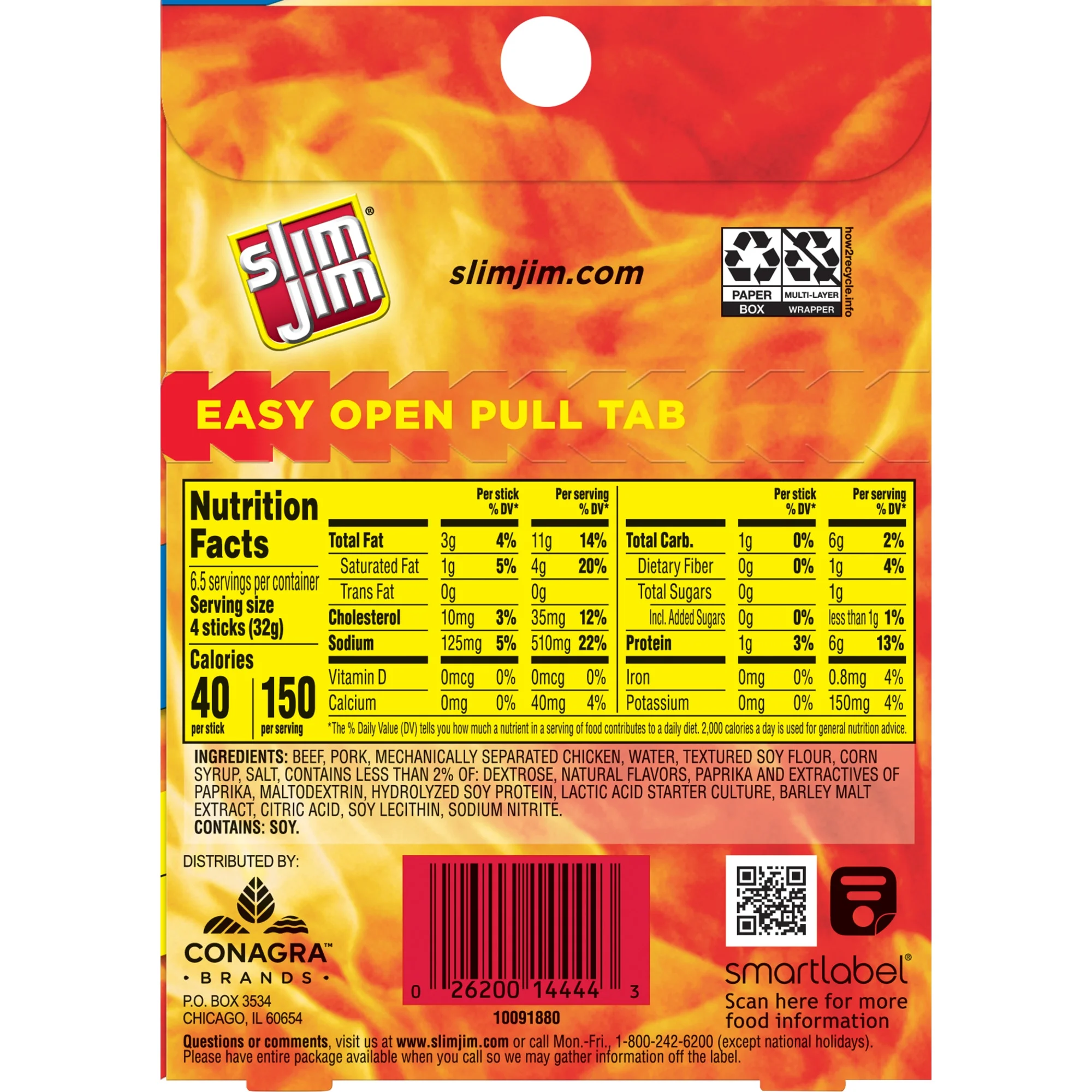 Experience intense, smoky flavor with delicious Slim Jim Mild Snack Sticks. Made with beef, pork and chicken, these snack sticks contain no artificial flavors or colors for full meaty flavor everyone can love. Each meat stick serving is loaded with 6 grams of protein, ideal for protein snacks that kick hunger to the curb and leave you feeling satisfied. These individually wrapped snacks go where you go and are perfect as travel snacks, school snacks or anywhere meat snacks. Slim Jim Mild Snack Sticks offer a bold and tasty way to take on the day. This box contains 26 individual snacks, so you are ready to hit back when savory cravings hit. Slim Jim keeps it interesting with a full line of beef sticks, snack sticks, pork rinds and jerky. Snap into a Slim Jim(R)!
